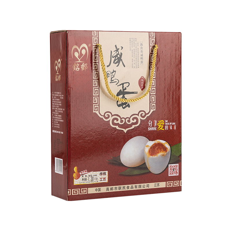 高郵市聯(lián)民食品公司成立于2012年,坐落在魚米之鄉(xiāng),一蛋雙黃,好事成雙的鴨蛋原產(chǎn)地高郵,專注鴨蛋行業(yè)很多年,目前致力于三家知名上市食品企業(yè)OEM代加工、和南京、常州、安徽、蘇州、優(yōu)質(zhì)食品企業(yè)深度合作及自主品牌線下代理商和線上的業(yè)務(wù)模式,精心深度加工麻鴨咸鴨蛋,專業(yè)生產(chǎn)咸蛋黃,精心做蛋的其他多種產(chǎn)品,公司擁有資深的研發(fā)團(tuán)隊(duì),有系統(tǒng)的研究和質(zhì)量控制中心,建設(shè)了有通風(fēng)功能,高效殺菌的恒溫腌制車間,具有專業(yè)的大型蛋品生產(chǎn)設(shè)備,擁有8000平方米的生產(chǎn)車間,服務(wù)全國(guó)客戶超千萬(wàn)枚的蛋制品,生產(chǎn)的“銘郵”牌系列蛋品選用當(dāng)?shù)貎?yōu)質(zhì)的高郵鴨蛋為原料,采用傳統(tǒng)秘制工藝及現(xiàn)代加工技術(shù)恒溫腌制而成。長(zhǎng)年供應(yīng),品種齊全。具體規(guī)格:55克、60克、65克、70克、75克、80克的咸鴨蛋及松花蛋,70克、80克、90克、100克以上的雙黃蛋及各種規(guī)格的咸蛋黃。希望各界伙伴和企事業(yè)單位共同就高郵蛋,攜手共贏!..